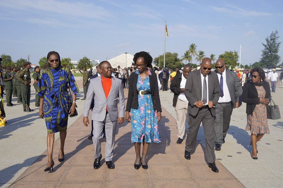 Acompanhada pelos dirigentes da OTM–Central Sindical e da CONSILMO, federações sindicais, parceiros sociais do Governo, a Ministra integrou a cerimónia de deposição de uma coroa de flores em homenagem aos Heróis Moçambicanos.