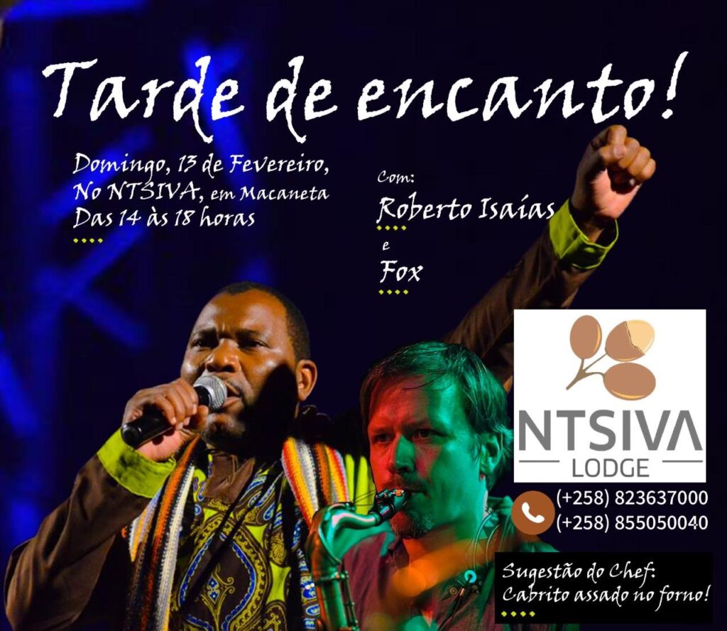 Este domingo há tarde de encanto no Lodge Ntsiva da Macaneta em Marracuene com Roberto Isaías e Fox a partir das 14 horas.