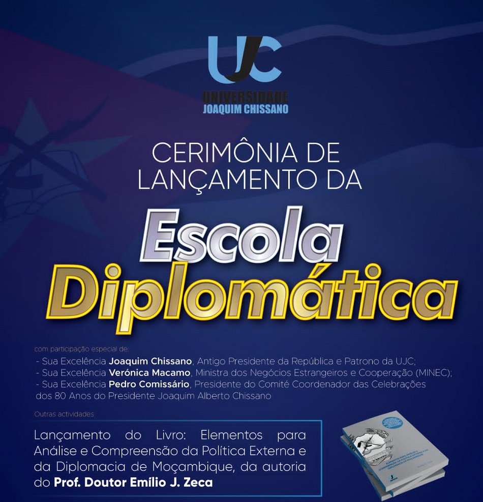 Deve estar a decorrer na Universidade Joaquim Chissano (UJC), um estabelecimento público de ensino superior em Maputo, a cerimónia de lançamento da sua recém criada Escola Diplomática (ED).