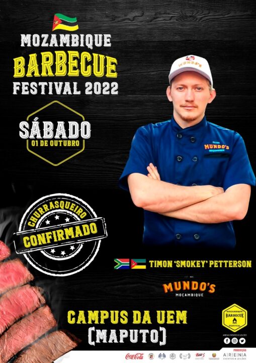 A Arena do Campus da Universidade Eduardo Mondlane, acolhe este sábado, dia 1 de Outubro, o Mozambique Barbebcue Festival 2022, um evento no qual vários chefs, mais de quinze mestres de gastronomia, nomeadamente: Mr. Faife (Moçambique), Beto Brutus (Brasil), Cutman´s Barbecue (Moçambique), Luís Caldeira (Moçambique), Celo Santos Careca (Portugal), Mbongueni Mhlongo (África do Sul), Timon Smokey Petterson (África do Sul), Leo Dom Pimenta (Brasil), Jorge Sab (Brasil), Bertus Fourie (África do Sul), Júlia Carvalho (Brasil), Betones (Brasil), Chef Rogério (Moçambique), Rodrigo Bueno (Brasil), vão desfilar suas qualidades no que diz respeito à preparação de carnes.