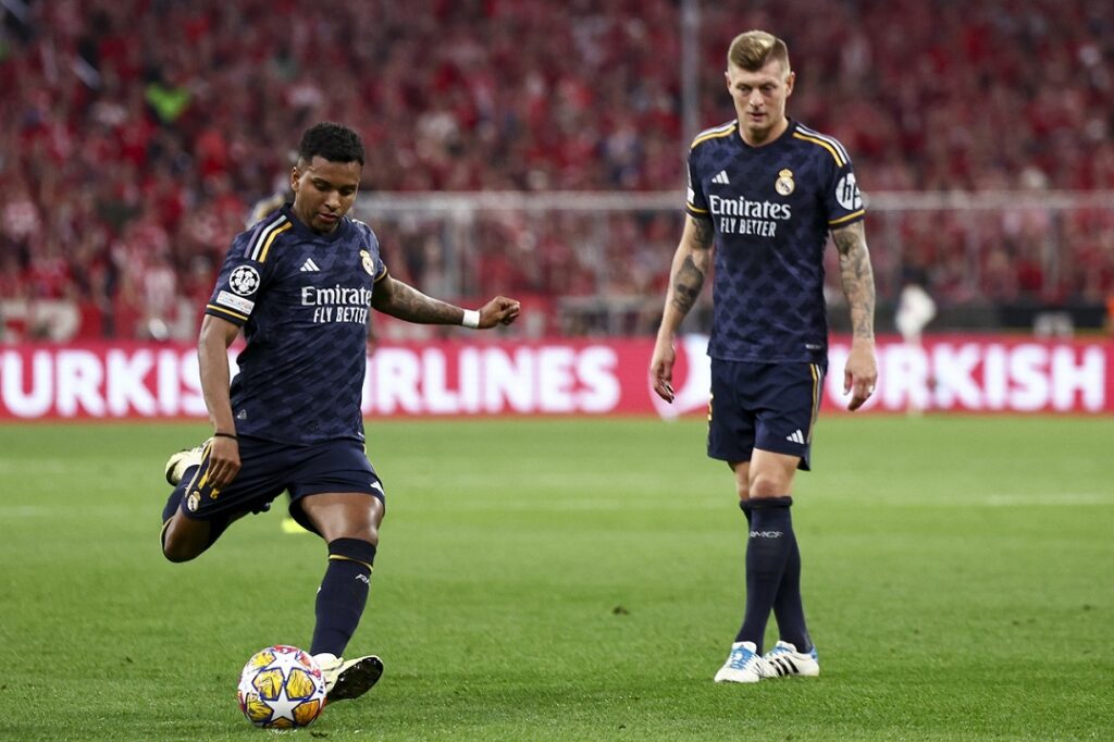 Na quarta-feira, o Real Madrid vai receber o Bayern de Munique no Estádio Santiago Bernabéu, em Madrid. No jogo daprimeira-mão, as duas equipas empataram 2 a 2 na Baviera, o que deixou os ‘Blancos’ numa posição ligeiramente favorável. Vamos ao Bernabéu com a eliminatória em aberto e com tudo em jogo, mas agora estamos na nossa ‘casa’”, disse Rodrygo, atacante do Real Madrid durante a conferência de imprensa.