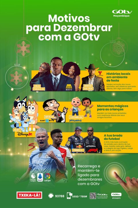 MAPUTO, Moçambique, 22 de Novembro de 2024 – Nesta época festiva, a GOtv está entusiasmada em aproximar a si da sua família. A contagem decrescente para a alegria já começou, uma gama de entretenimento sem igual espera por si no seu pacote preferido daGOtv.Ocupe os seus dias e noites com histórias que ligam a diferentes comunidades, levam numa aventura, inspiram as suas refeições, entretêm as crianças e juntam toda a família.